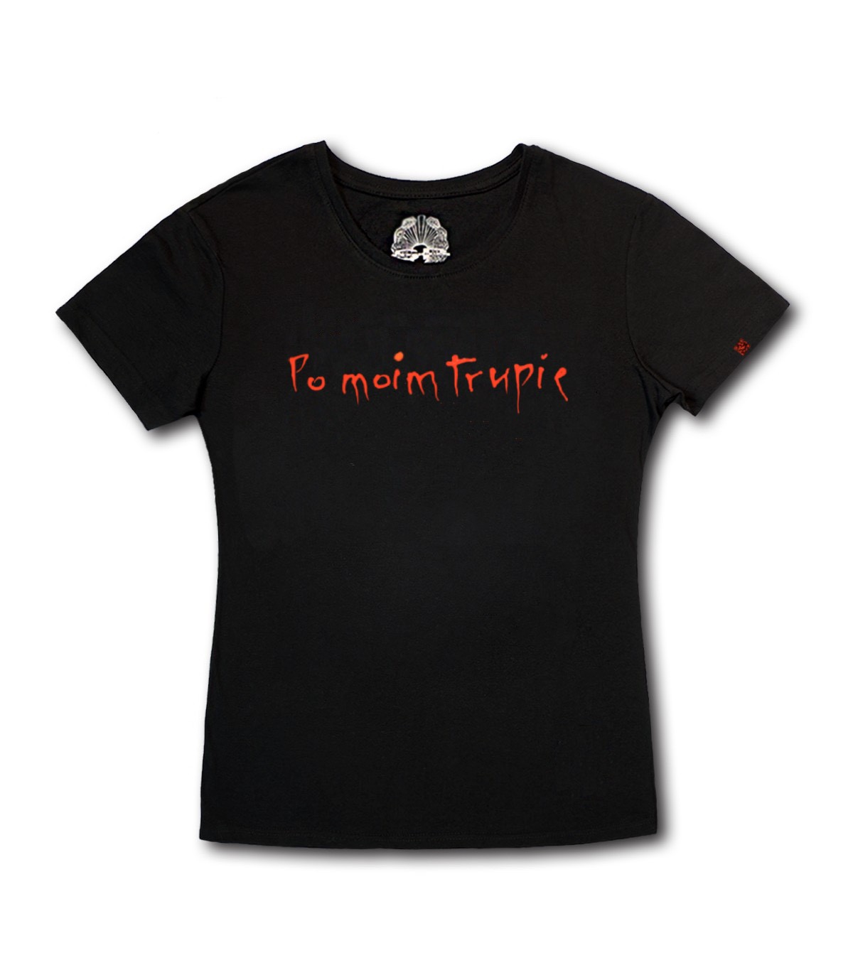 Koszulka z dużym napisem pochodzącym z okładki albumu KAZIK & KWARTET PROFORMA - PO MOIM TRUPIE. Z tyłu koszulki na wysokości karku znajduje się mały nadruk z napisem.
