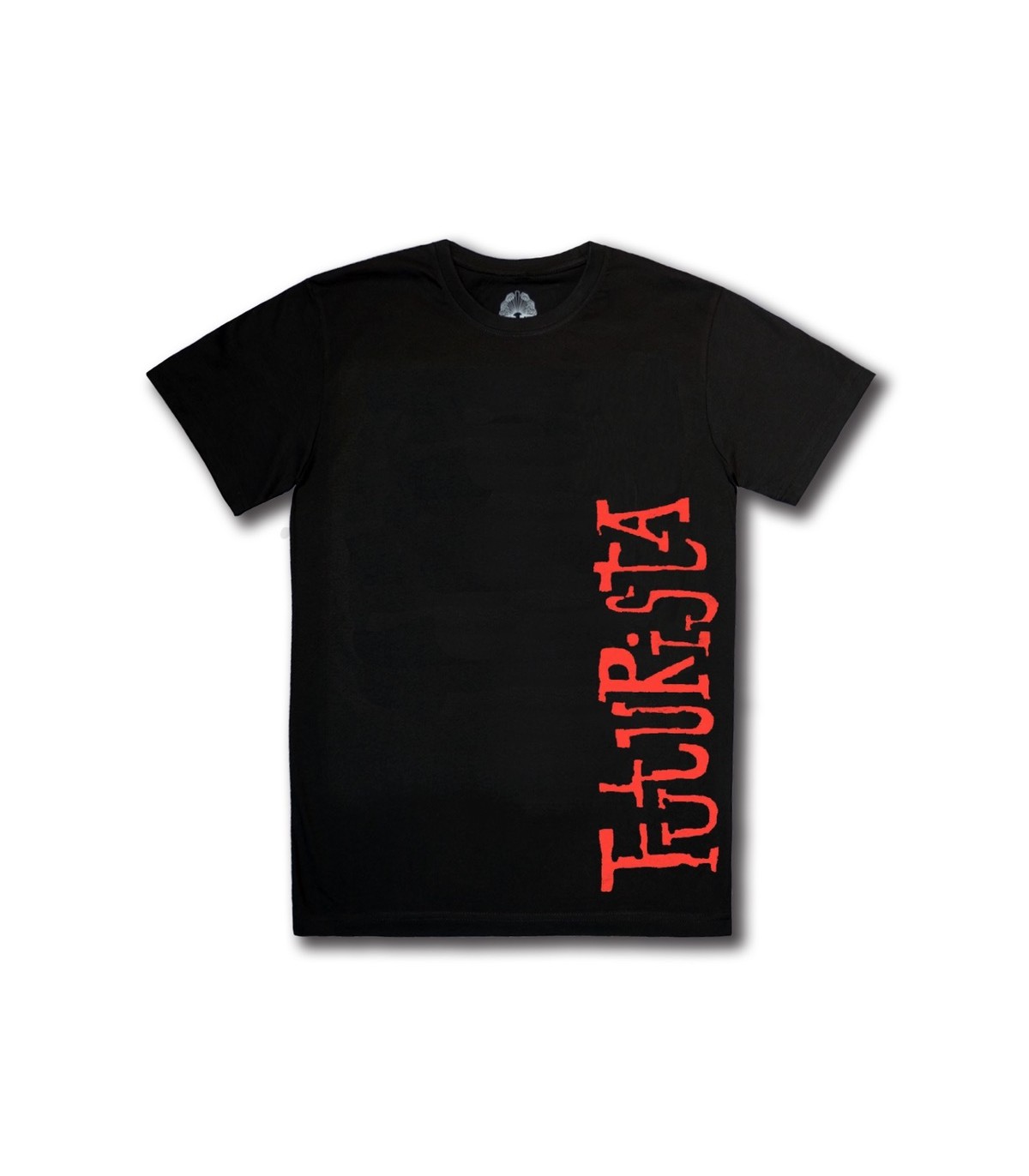 Koszulka z dużym czerwonym napisem pochodzącym z okładki albumu Pidżama Porno - Futurista. Z tyłu koszulki na wysokości karku znajduje się mały nadruk z napisem.