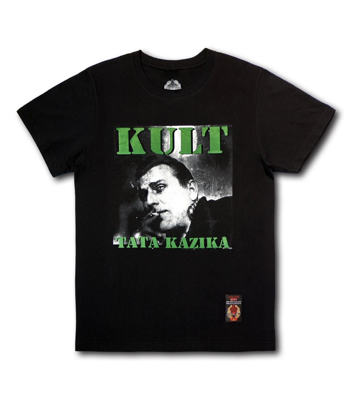 Koszulka damska z dużym nadrukiem okładki albumu "Tata Kazika". Nadruk jest lekki, miękki, ledwo wyczuwalny i jednocześnie trwały. Z tyłu koszulki, na wysokości karku znajduje się mały nadruk SP RECORDS QR.